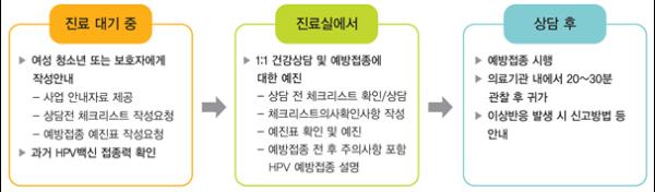 정부는 2016년부터 만 12세 여성청소년에게 사람유두종바이러스 감염증 백신 예방접종과 사춘기 성장발달 관련 건강 상담 서비스를 2회 무료 제공하는 ‘건강여성 첫걸음 클리닉 사업’을 시행해 왔다.