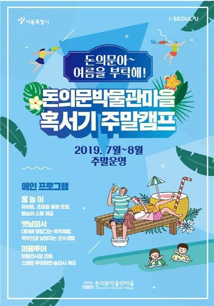 이번 행사는 예로부터 전해져오는 피서법을 체험해보는 ‘탁족체험’과 ‘오수체험’, 마을 마당에서 펼쳐지는 초등학생 이하 어린이 대상 프로그램, 돈의문 물놀이장, 돈의문박물관마을의 주요 공간을 체험해 볼 수 있는 스탬프투어가 진행되며, 모든 프로그램은 무료로 참여할 수 있다.