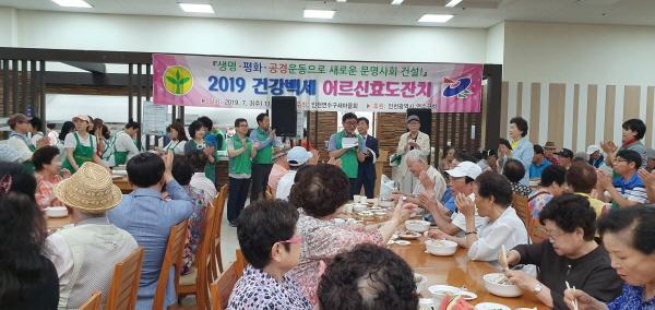 연수구새마을회는 지난 3일 연수구청 구내식당에서 김예순 부녀회장을 비롯한 남녀새마을지도자 100여명이 참여한 가운데 ‘2019 건강백세 어르신 효도잔치’를 개최했다.
