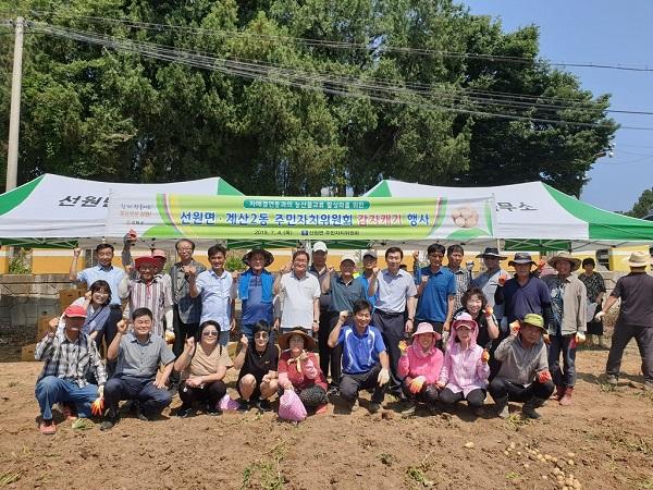이날 수확한 감자를 포함해 강화보리쌀 등 선원면에서 생산한 농산물을 계산2동 주민자치위원에서 직거래 했다.