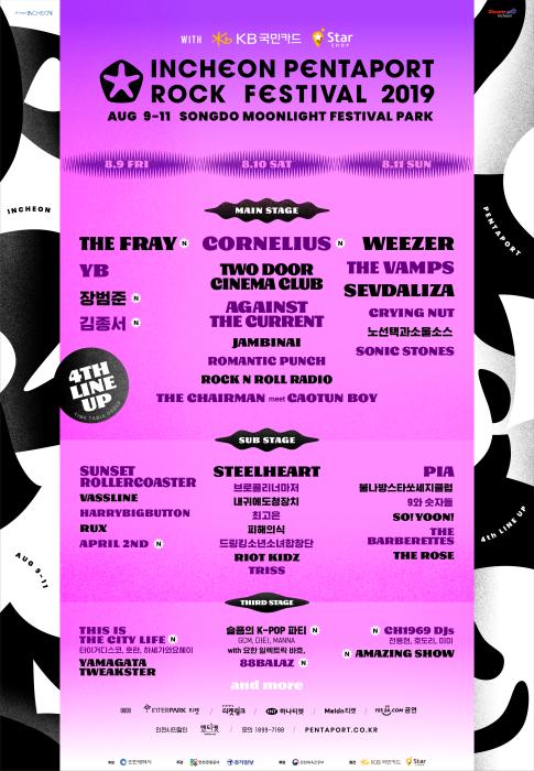 이번 4차 라인업에는 금요일(9일)과 토요일(10일)의 헤드라이너인 더 프레이(The Fray), 코넬리우스(Cornelius)가 결정되었다. 이로써 일요일(11일) 위저(Weezer)를 포함하여 『2019 인천 펜타포트 락 페스티벌』의 헤드라이너는 모두 확정되었다.