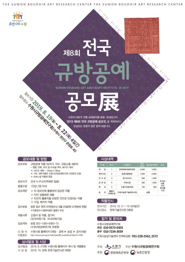 수원시가 오는 8월 19일부터 22일까지 ‘제8회 전국 규방공예 공모전’ 출품작을 접수한다.