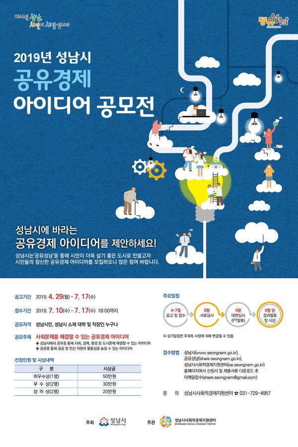성남시는 오는 10일부터 17일까지 공유경제에 관한 시민 아이디어를 공모한다.