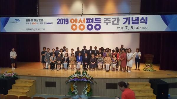 파주시는 지난 5일 양성평등주간을 맞아 ‘평등을 일상으로 함께한 100년, 함께할 100년’이라는 슬로건아래 문산행복센터 대공연장에서 시민 300여명이 참석한 가운데 ‘2019년 양성평등주간 기념행사’를 개최했다.