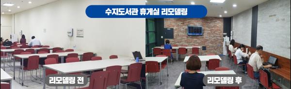 용인시 수지도서관은 이용자들의 편의를 위해 휴게실을 리모델링했다고 8일 밝혔다.