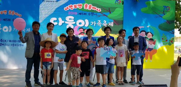 이날 축제에는 연예계 대표 다둥이 가족인 그룹 V.O.S 멤버 가수 박지헌씨의 축하무대를 비롯해 다채로운 공연과 체험행사가 열렸으며, 염태영 수원시장, 백혜련 국회의원, 경기도의회 박옥분 여성가족평생교육위원장, 김강식 의원과?수원시여성지도자를 비롯한 도민 등 3,000여명이 참석했다.