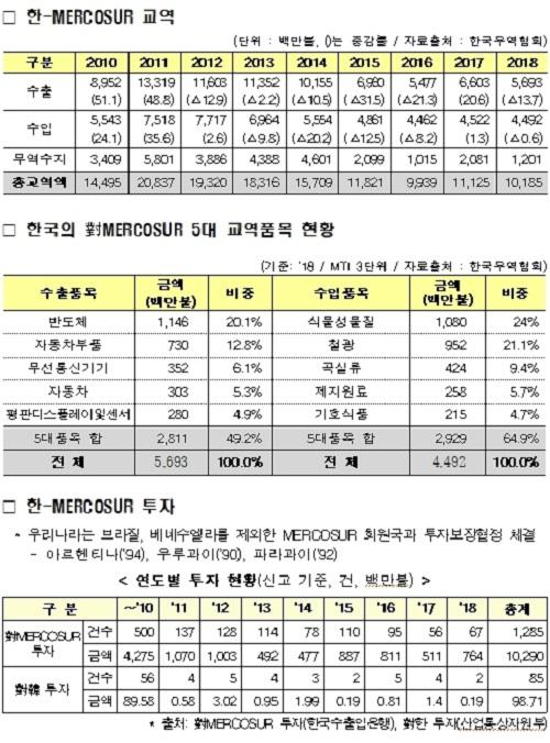 특히, 우리 기업의 對메르코수르 주력 수출상품에 대한 시장개방 협상을 본격화해, 향후 남미 시장에 다른 나라 기업들보다 유리한 조건으로 진출할 수 있는 기반을 마련하는데 협상력을 집중할 계획이다.