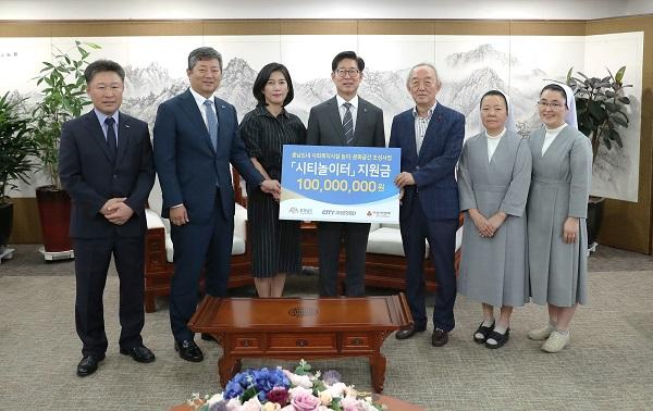 양승조 충남지사와 윤지연 시티문화재단 이사장 등 12명이 참석한 가운데 연 이번 행사에서 시티문화재단은 아동·청소년 복지시설 마련을 위한 성금 1억 원을 도에 기부했다.