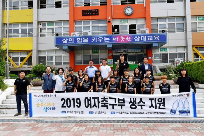 또한 포항은 같은 날 항도중학교, 포항여자전자고등학교 여자축구부에도 ‘청아라’ 생수 50박스를 각각 지원하였다.