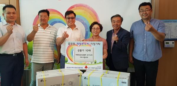 대한전문건설협회 경기도회 여주시협의회에서는 본격적인 무더위가 시작되기 전 중앙동 관내에 거주하는 저소득 가정의 여름나기를 위해 선풍기 10대를 기탁했다.