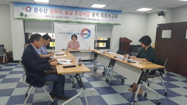 김포시는 지난 5일 시청 영상회의실에서 ‘문수산 군하리 숲길 조성사업’ 기본 및 실시설계용역 최종보고회를 개최했다.