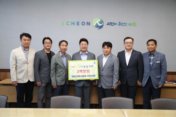 이천시는 지난 8일 대한건축사협회 이천지회에서 성금 2백만 원을, 항공작전사령부 비승어린이집에서 성금 5십만 원을 이천시 행복한 동행사업에 기탁해 왔다고 밝혔다..