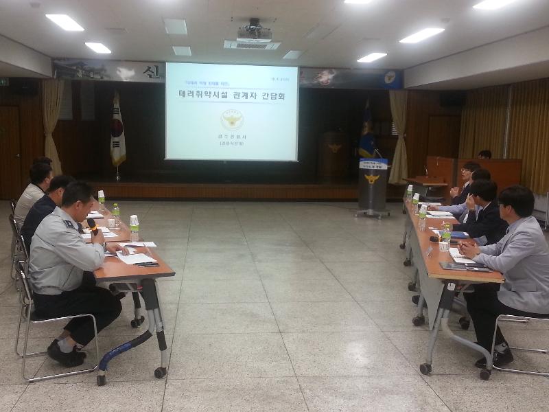 4. 27.(수) 오전 경주경찰서 대회의실에서 테러취약시설 관계자들과 간담회를 개최하였다.