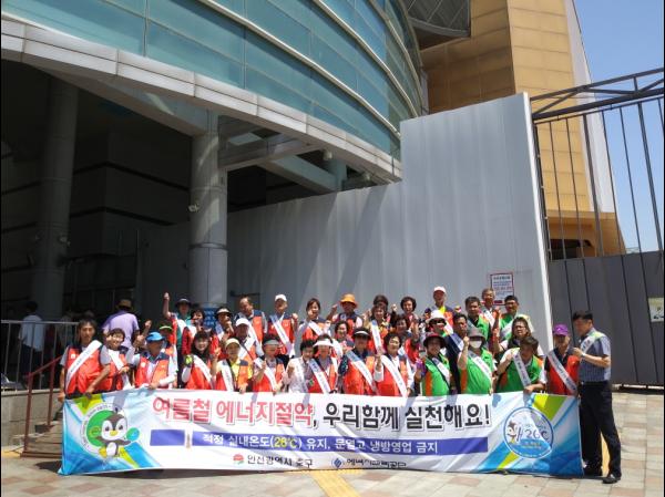 이날 캠페인 행사는 인천광역시 중구청과 유관단체 40여명이 참가해 어깨띠를 두르고 가정, 사무실, 자동차에서 분야별 여름철 폭염으로 인한 에너지절약 홍보 및 게도를 실시하고, 적정 실내온도 26℃ 유지, 개문냉방 금지, 불필요한 콘센트 뽑기 등, 권장 냉방온도 준수 및 사용자제, 절전형 멀티탭 사용 등 홍보물 및 홍보전단지를 배포했다.