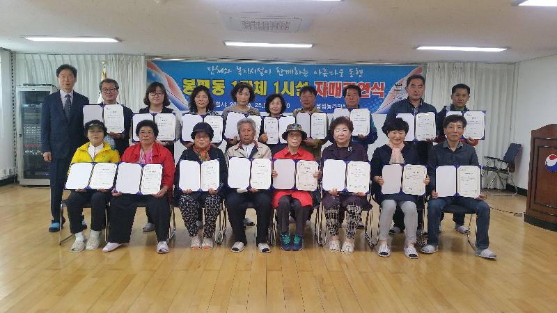 이날 행사는 봉평동 자생단체장 9명과 결연대상 시설인 경로당 및 그룹홈 대표 9명이 참석하여 지속적인 봉사활동으로 상호 공동발전과 우호증진을 위해 함께 노력하는 공동체임을 다짐하는 자매결연 증서에 각각 서명 및 교환, 기념촬영, 대화의 시간으로 이어졌다.