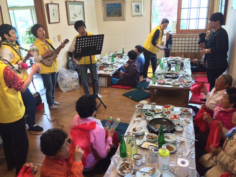 이 행사는 다가오는 5월 가정의 달을 맞아 산양읍자원봉사회가 추진중인 “어르신들이 건강한 오늘, 행복이 보이는 내일”을 만들어 가기위한 ≪홀로어르신 아름다운동행≫의 일환으로 실시되었으며 산양읍소재 마을 어르신들 중 주위의 소외된 홀로어르신들에게 따뜻한 점심를 제공하고 신명나는 한마음 행사를 열어 어르신들에게 즐거움을 드리고, 자원봉사회에서 준비한 선물도 증정하는 시간을 가졌다.