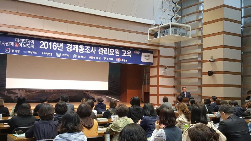 포항시는 26일과 27일 이틀산 시청 대회의실에서 ‘2016 경제총조사’의 성공적인 추진을 위해 포항, 경주, 영천, 영덕, 울진, 울릉 등 6개 시군의 공무원 및 관리자 115명을 대상으로 ‘2016 경제총조사 지침교육’을 실시하고 있다. 이번 교육에서는 통계청 최기재 팀장이 2016 경제총조사 지침 설명, e-Census 시스템 운영 방법, 안전수칙 등을 전달했다. 2016 경제총조사는 2015년 12월 31일 기준 관내 종사자 1인 이상의 모든 사업체를 대상으로 하며 산업의 고용, 구조 등에 대해 조사하는 범국가적인 대규모 통계조사로, 조사결과는 경제·산업의 객관적인 현황 및 실태 분석과 미래발전 전략의 기초자료 등으로 활용된다. 조사항목은 총 41개로 공통 항목은 16개, 특성항목 25개이며 조사표별로 16~23개 항목으로 구성되어 있다. 공통항목에는 사업체명, 대표자명, 소재지, 조직형태, 종사자수 및 연간급여액 등이 있다.