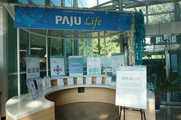 교하도서관 ’파주라이프‘는 1층 로비에 마련된 파주시 지역정보 제공 코너로 지난 2015년부터 파주의 다양한 기관 및 지역 정보를 제공해왔다. 7~8월에는 파주 지역화폐 ’파주Pay‘ 관련 정보를 제공한다. 지역화폐의 필요성과 효과, 실제로 지역화폐를 발급해 활용하는 방법, 구체적인 사용처 정보까지 실제 지역화폐 사용에 필요한 다양한 정보를 만날 수 있다.