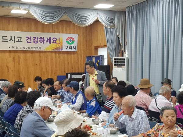 구리시에서는 지난 9일 동구동 행정복지센터에서 동구동새마을협의회와 새마을부녀회 공동 주관으로 관내 독거 어르신 80명을 초대해 삼계탕과 과일을 대접하는 복 맞이 행사를 가졌다.