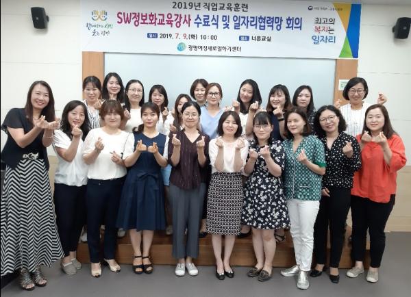 광명시 여성새로일하기센터는 지난 9일 여성비전센터에서 경력단절여성을 위한 직업교육훈련‘SW정보화교육강사 양성과정’수료식을 가졌다.