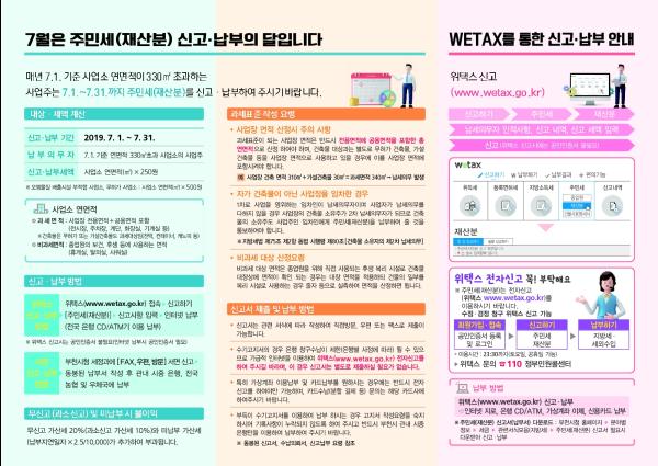 부천시는 7월 “주민세 신고·납부의 달”을 맞아 납세자에게 납부편의를 제공하고 가산세 등 불이익을 최소화하기 위해 관내 6,500여개 사업소의 사업주에게 안내문을 발송하는 등 적극 홍보에 나섰다.