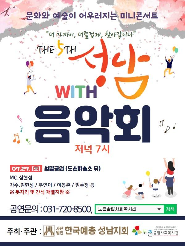 도촌종합사회복지관은 오는 27일 오후7시 ‘제 5회 성남WITH음악회’를 한국예총 성남지회와 공동 주관 해 개최할 예정이다.