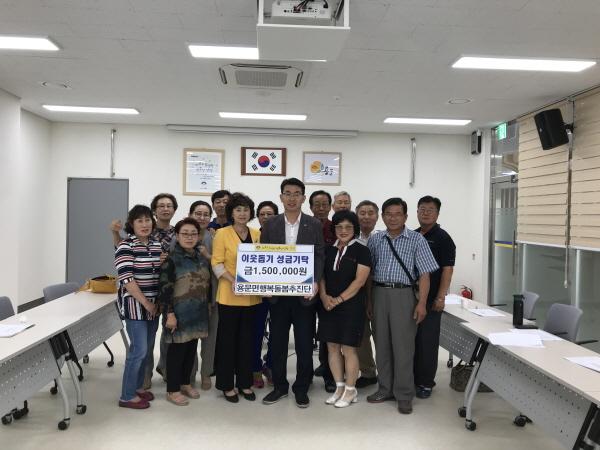 이은숙 단장은 “단원들과 함께 땀 흘려 마련한 후원금이 어려운 이웃에게 희망을 줄 수 있는 일에 쓰이길 바란다.”고 전했고, 윤건진 용문면장은 “어려운 이웃을 위해 늘 발로 뛰는 용문면 행복돌봄추진단에게 감사의 인사를 전한다. 앞으로도 ‘소외 없는 복지’를 위해 용문면도 함께 최선을 다하겠다.”고 말했다.