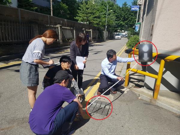 집중 폭우 시 빗물을 배수하는 빗물받이가 이물질, 악취방지 덮개 등으로 침수되는 사례를 착안해 작년에 비피해가 컸던 6~8통 지역과 다락원 일대 150여 곳에 빗물받이 위치를 표시, 수해 복구에 신속한 대응이 가능하도록 조치했다.