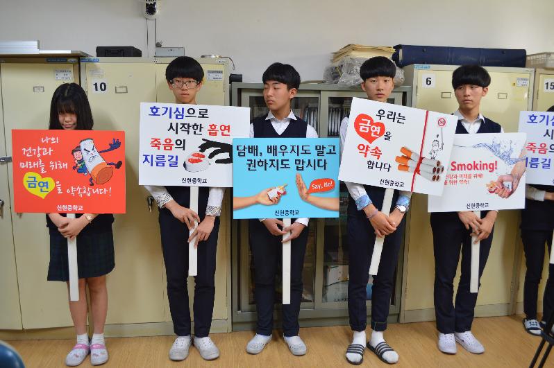 청소년 흡연은 노년기까지 연결되므로 조기 흡연 학생의 단연을 위하여 지속적이며 일관된 금연 지도와 아울러 청소년인 전교생 모두가 금연 운동에 참여해야만 가능한 일이다. 전교 회장 김신현 학생이 대표로 금연 선언문을 읽었고, 금연 선언문에 따라 전교생이 선서를 했다. 이후, 학생들은 각자의 서약서에 자신의 이름을 서명함으로 전교생 금연 선포식 및 서약서 작성을 완료했다.