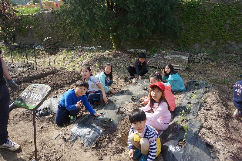 당일 1학년은 땅콩, 옥수수, 2학년은 토마토, 땅콩, 3학년 오이, 옥수수. 4학년은 찰토마토, 오이, 5학년은 방울토마토, 오이, 6학년은 오이, 땅콩, 옥수수를 심기 위해 반 친구들과 함께 괭이와 호미로 땅을 일구고 씨를 뿌리느라 땀을 흘리기도 했다.