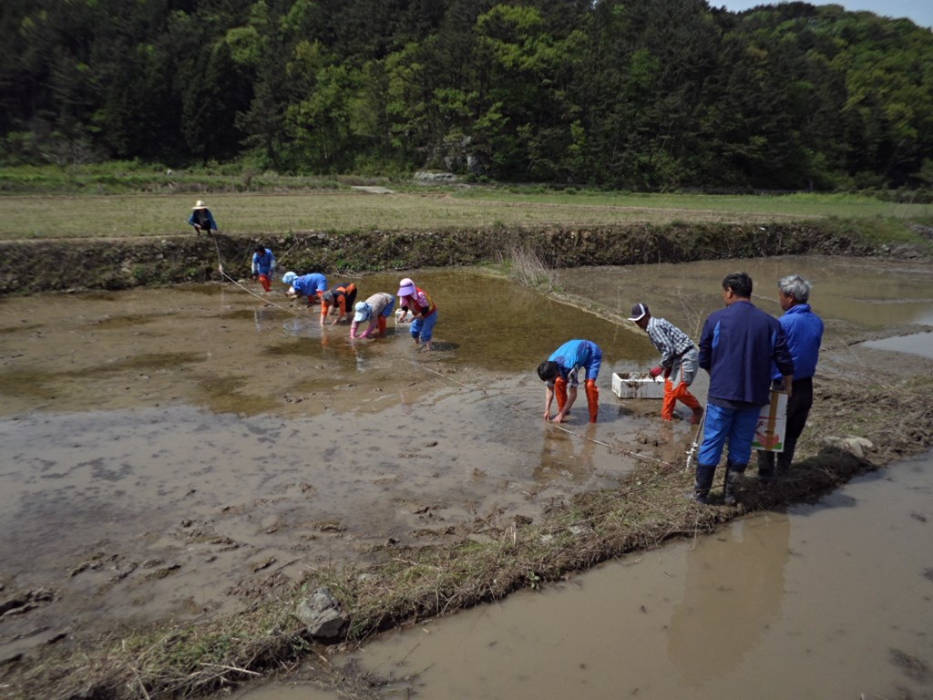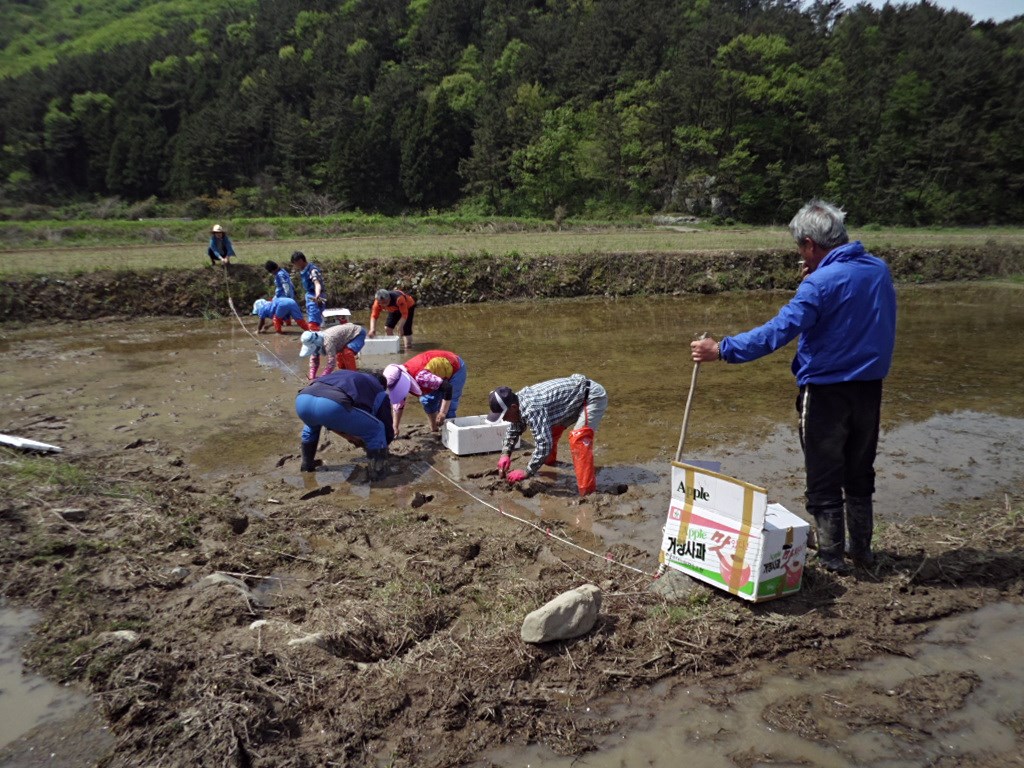 이번 연꽃단지 조성작업은 배수가 좋지 않아 농사에 부적합한 휴경지 1,200㎡에 우포늪에서 서식하는 홍련과 백련 500여촉을 식재했다.