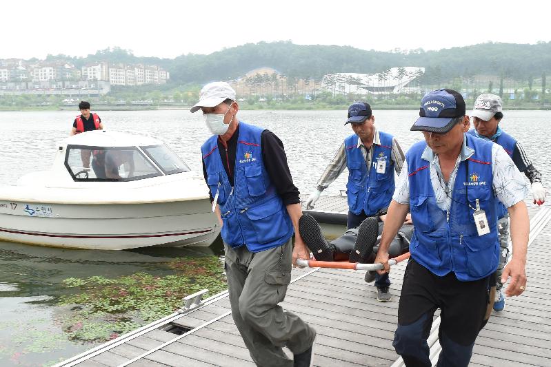 이날 훈련은 수난 안전사고 시 초기 대응훈련, 수난사고 안내방송, 수난 구조장비 활용능력 및 현지적응 능력을 향상 훈련을 실시했다. 또, 스킨다이버, 구명부환 이용, 로프 이용, 보트 이용 인명구조, 잠수장비 착용 익수자 구조법 등 다양한 구조방법으로 훈련을 실시했다.