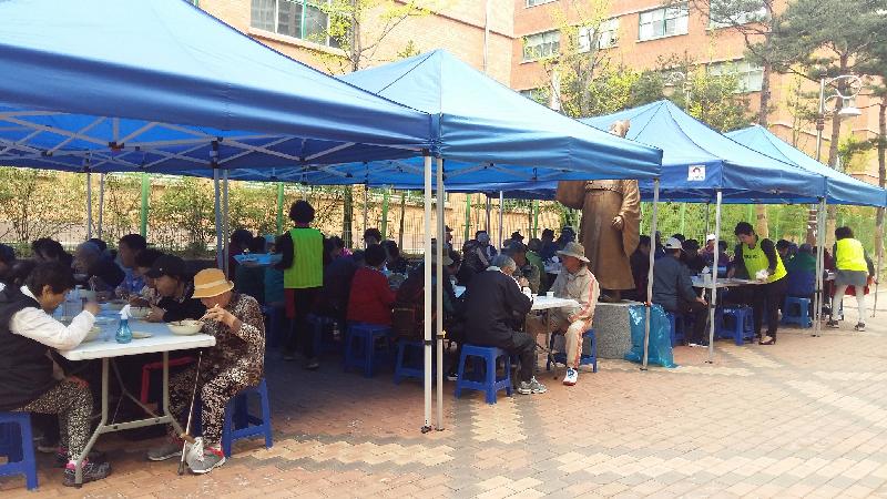 화성시 동탄 2동 솔빛공원에서는 지난 27일 지역 어르신 200명을 대상으로 짜장나눔 봉사활동이 펼쳐졌다.