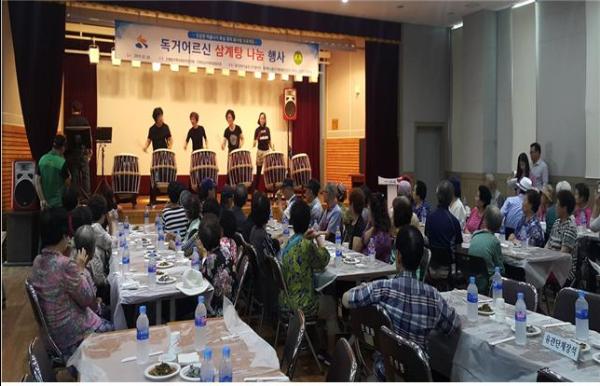 저소득 독거어르신 100명 초대 후 공연 및 식사대접
