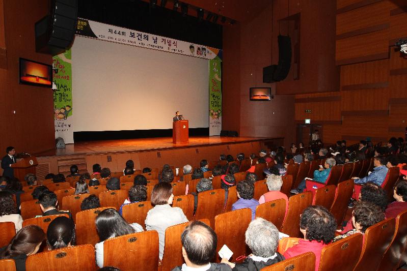 이날 기념식에서는 시민 건강증진 향상을 위해 노력한 숨은 유공자들을 표창하고 감염병 분야 국내 최고권위자인 고려대 감염내과 김우주 교수로부터 지카바이러스, 메르스 등 신종 감염병으로부터 건강지키기에 관한 특강 및 초청가수의 축하공연 순으로 진행됐다.