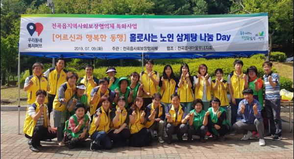 전곡읍행정복지센터는 전곡읍새마을부녀회와 전곡읍지역사회보장협의체 연계해 지난 9일 전곡읍에 거주하는 저소득 독거노인 220명을 대상으로 ‘어르신과 행복한 동행, 사랑가득 영양가득 삼계탕 나눔 Day’를 실시했다.