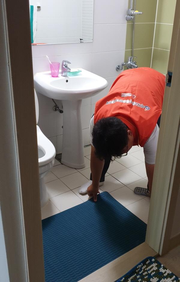 홀로 사시는 어르신 10가정 방문, 화장실 미끄럼방지매트 설치