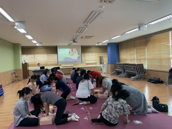 또한 박애병원 응급의학과?전문의사가?교육을?담당해 응급구조 활동의 원칙 및 각종질환의?응급처치 등에?대한 이론교육과?환자의 반응확인?및 구조요청,?가슴 압박심폐소생술,?인공호흡법,?자동심장충격기 사용방법 등 실습교육을 실시하며, 개인별 평가 후 수료증이 발급된다.