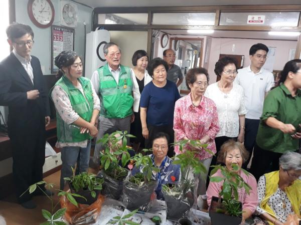 자금동 주민센터는 지난 10일 자금동 거북마을경로당에서 정서생활 지원사업의 일환인 찾아가는 셀프 홈가드닝 프로그램을 진행했다.