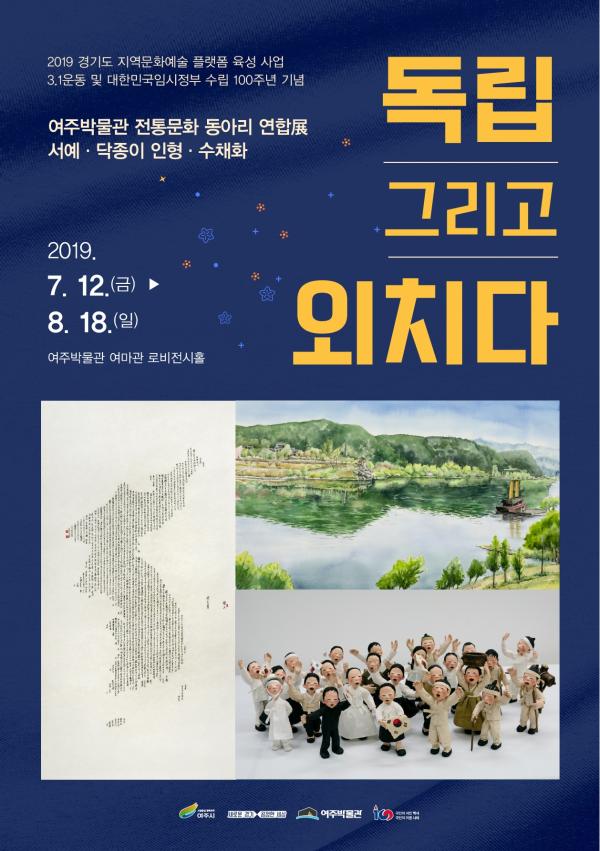 여주시 여주박물관에서는 7월 12일부터 8월 18일까지 여마관 로비전시홀에서‘독립 그리고 외치다’전통문화 동아리 연합전시를 개최한다.