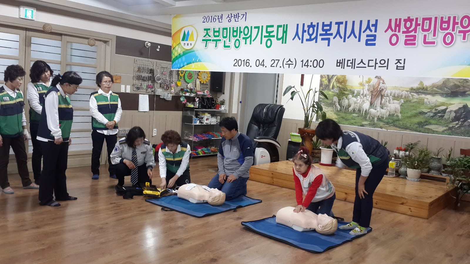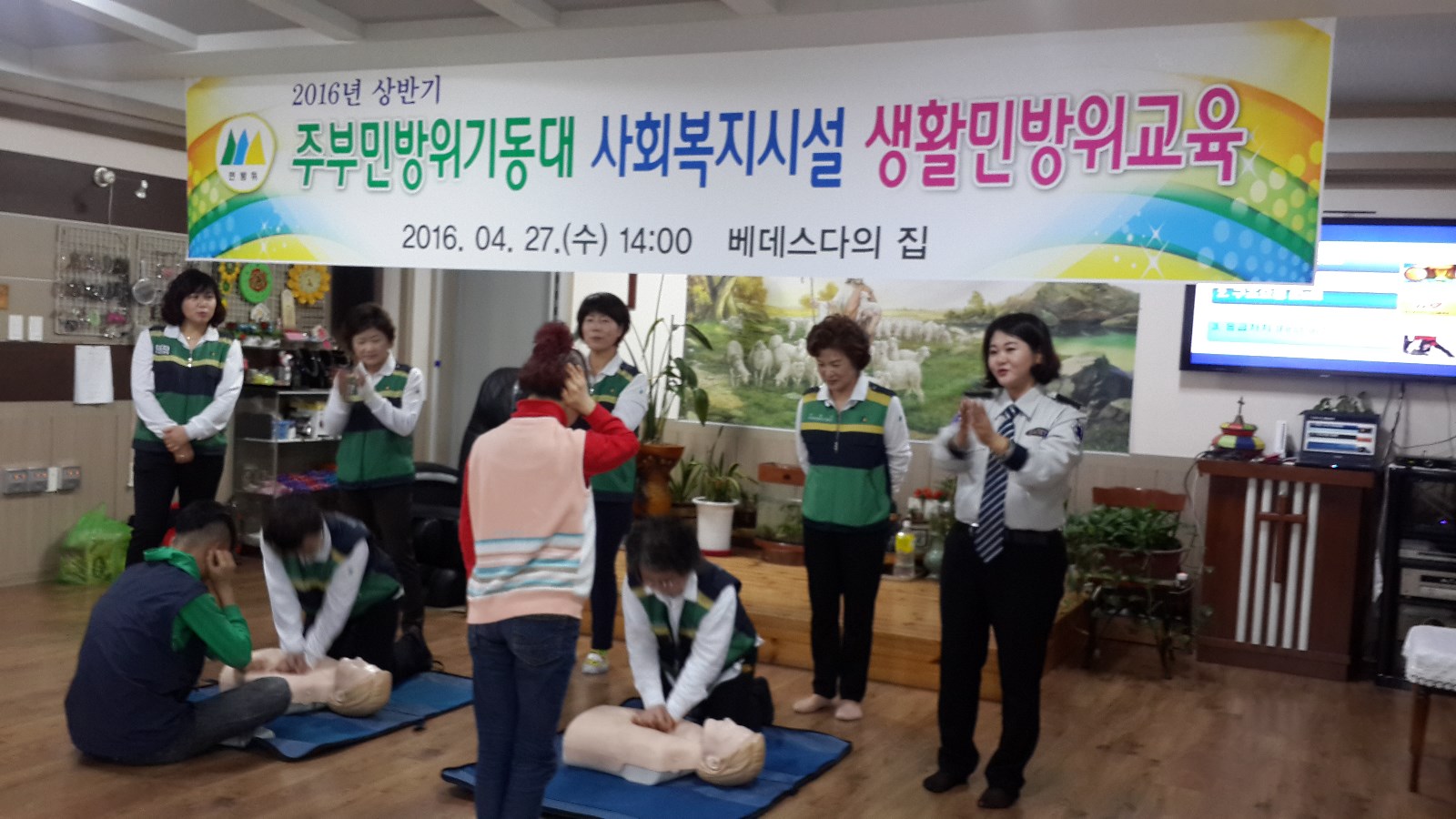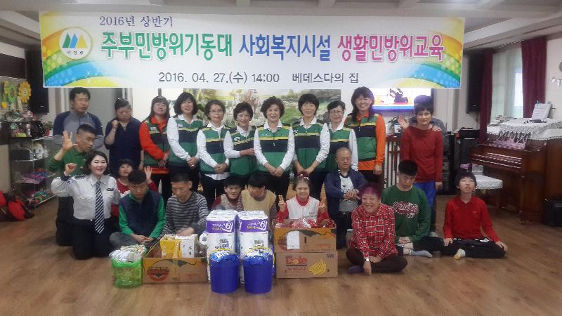 거제시 주부민방위기동대는 4월 27일 오후 2시 연초면에 위치한 사회복지시설 ‘베데스다의 집’에서 시설 관리자 및 이용자 30여명을 대상으로 생활민방위 교육을 실시하고 후원물품을 전달했다.
