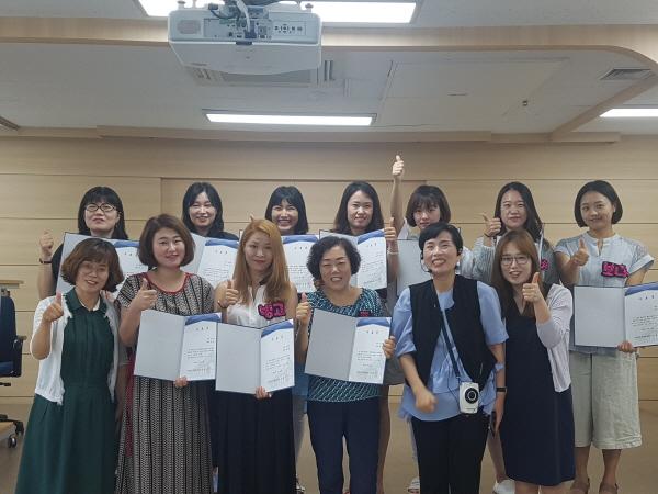 ‘동화구연 지도사 3급 자격증’과정은 동화구연에 대한 다양한 이론과 실기 실습을 통해 자격증 취득을 위한 역량을 강화하고 자녀들에게 들려줄 동화구연법을 익히는 유익한 교육과정으로 진행됐으며, 14명이 수료했다.