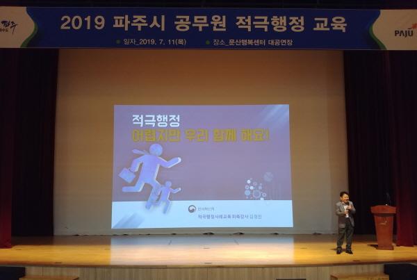 파주시는 11일 문산행복센터 대공연장에서 전 직원을 대상으로 '2019 적극행정 교육'을 실시했다.