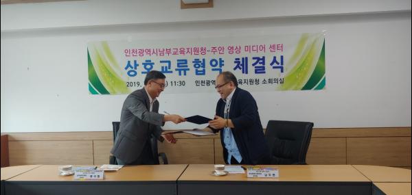 인천광역시남부교육지원청은 지난 10일 소회의실에서 주안영상미디어센터과 미디어 체험 및 자유학년 활동 지원을 위한 상호교류협약을 체결했다.