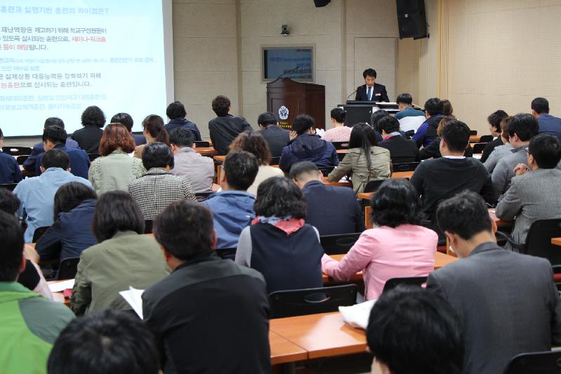 경주교육지원청(교육장 구종모)은 4월 27일 15:00부터 각급 학교 및 소속기관의 재난대응 안전한국훈련 담당자들이 참석한 가운데 ‘2016년도 재난대응 안전한국훈련’ 설명회를 개최하였다. 이번 설명회는 5월 16일부터 20일까지 총 5일간 진행되는 2016년 재난대응 안전한국훈련의 훈련목표, 훈련방법, 훈련계획, 중점추진사항 등에 대한 안내를 통해 원활한 훈련 진행에 기여하고자 마련되었다. 설명회에서는 실제훈련, 토론기반훈련, 체험형 안전문화실천운동 등의 훈련방법에 대한 설명과 각 일자별 훈련진행 계획, 훈련 유형별로 유의해야 할 사항에 대해서 알아보고 훈련 진행이 계획에 따라 차질 없이 진행되도록 당부하였다.