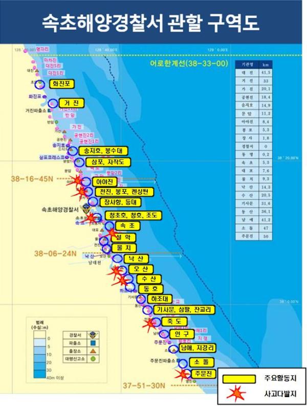 주요활동지는 인천 무의도 등 220곳, 사고 다발지는 전남 목포 안마도 인근 해상 등 149곳, 강원 강릉항 등 주요 항·포구 127곳이다.