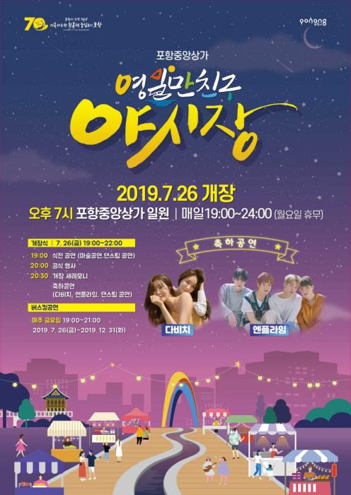 영일만친구 야시장은 지난해 행정안전부의 “전통시장 야시장 공모사업”에 선정되었으며, 포항시는 다양한 먹거리와 살거리, 볼거리를 제공함으로써 구도심 및 지역경제 활성화와 새로운 일자리 창출을 위해 포항 중앙상가상인회(회장 이희우)와 함께 영일만친구 야시장 개장을 야심차게 추진해 왔다.