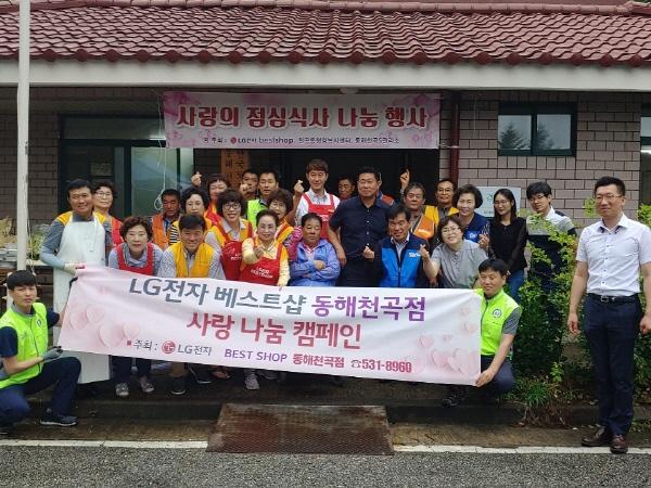 지난 10일에는 드림레저의 천막 등 집기 후원과 LG전자베스트샵 동해천곡점에서 150만원 상당의 점심식사와 사은품 제공으로, LH주공5차아파트 경로당 어르신들에게 맛있는 점심을 대접했다.