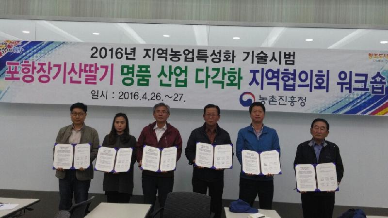 포항시는 지난 26일 경남 사천 인재니움연수원에서 포항장기산딸기 명품 산업 다각화를 위해 6개 기관이 상호업무협약 체결을 맺었다. 포항시농업기술센터, 장기면사무소, 장기산딸기영농조합법인, 장기농업협동조합, 장기봉산체험마을, (재)포항테크노파크는 장기산딸기 명품 산업의 다각화를 위해 서로 호혜적인 협력관계를 구축하고 상호간의 이익이 증진될 수 있도록 유대를 강화하기로 했다. 또한 장기산딸기 관련 정부사업 및 홍보 공동수행과 교육·인적자원 교류 협력, 정보 및 연구시설과 장비의 상호 이용을 내용으로 한 협약을 체결하고 장기산딸기의 명품화에 적극 동참하기로 협의했다. 협약식에 참가한 6개 기관 관계자와 산딸기영농조합법인 회원 등 지역협의회 40명은 산딸기 조기 생산 기술도입을 위해 4월 26일부터 27일까지 경남 사천시, 김해군 일원의 산딸기 조기재배단지 및 국립원예특작과학원 시설원예연구소 등을 벤치마킹하고, 우리시 기술 접목 부분을 심도있게 논의하는 워크숍도 함께 추진했다.