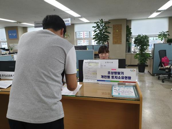 조상 땅 찾기 서비스란 사망자 또는 조상의 토지소유현황을 상속인에게 알려주는 재산조회 서비스로 2019년도 상반기에 3천309명이 신청해 922명이 2천856필지의 토지소유현황을 확인하는 등 성과를 보이고 있다.